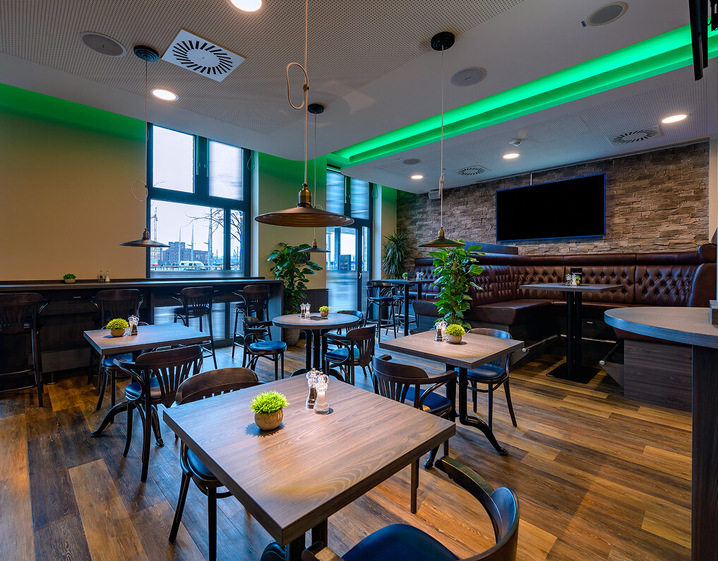 Im The Public pub & bar trifft modernes Irish-Pub-Feeling im Boothafen Kiel auf ehrliche, heimische Küche: saftige Burger, herzhafte Steaks, knackige Salate und Klassiker wie Wiener Schnitzel oder Currywurst. Dazu gibt’s im The Public Kiel kühle Fassbiere, spritzige – auch alkoholfreie – Cocktails und kreative Drinks – der perfekte Ort für entspannte Abende mit Freunden oder den Feierabend an der Bar.